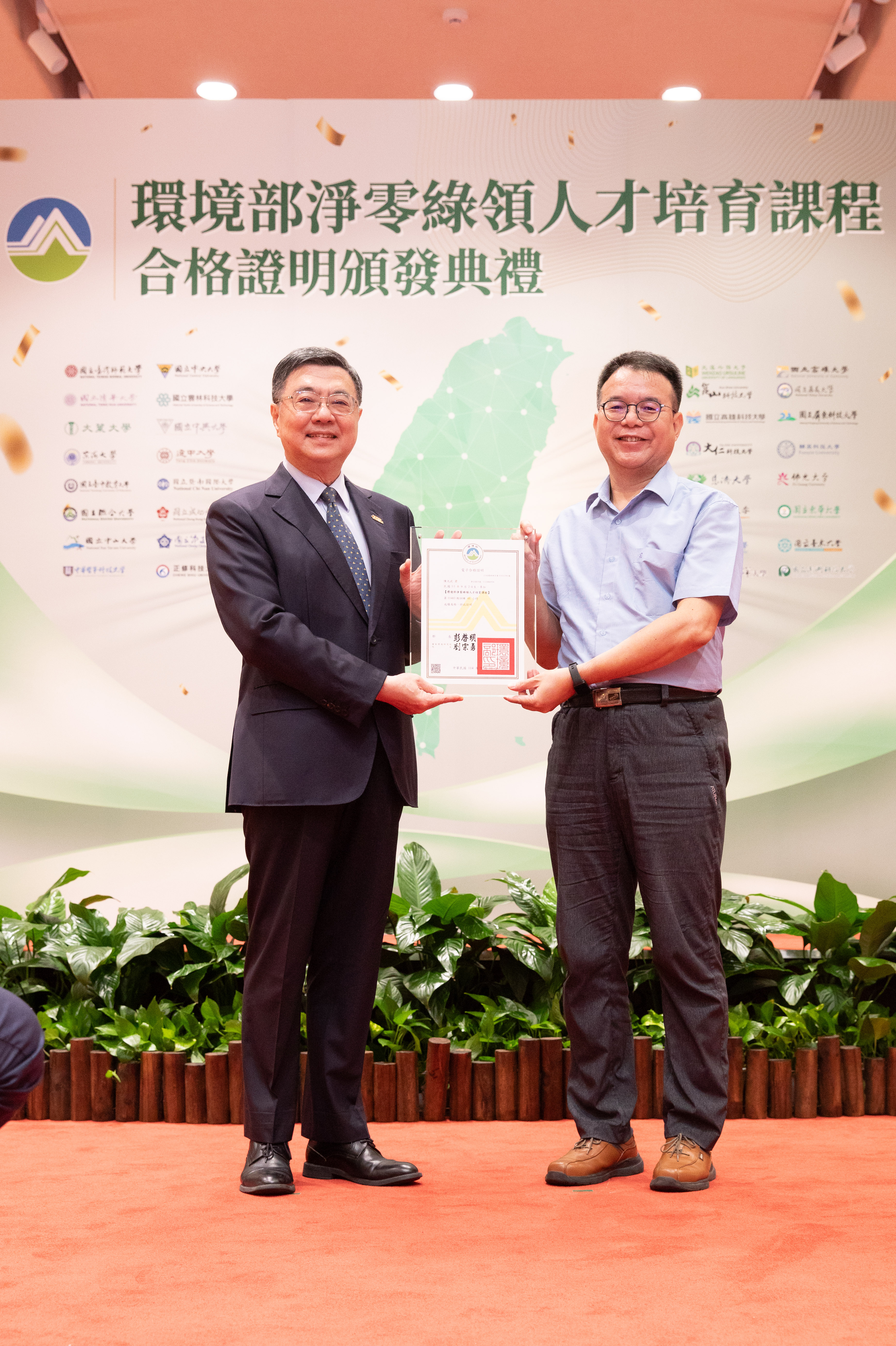 行政院於9月25日舉行「環境部淨零綠領人才培育課程」合格證明頒發典禮,22名表現優異學員獲邀由行政院院長卓榮泰親自頒證。其中來自中央大學訓練的一位陳姓學員,從1,400多名參訓者中脫穎而出,榮登全國最高分榜首。該名陳學員原本即具備溫室氣體查驗專業背景,為掌握最新政策,主動報名參訓,展現對淨零永續議題的高度投入。